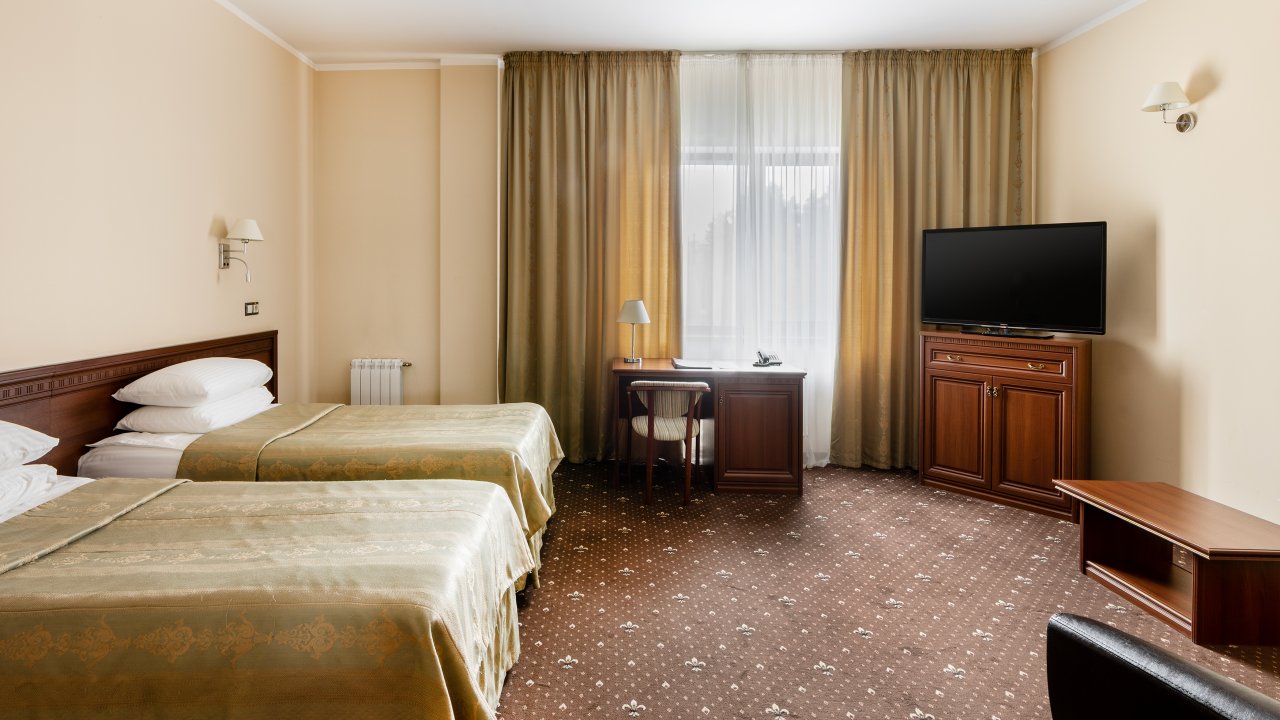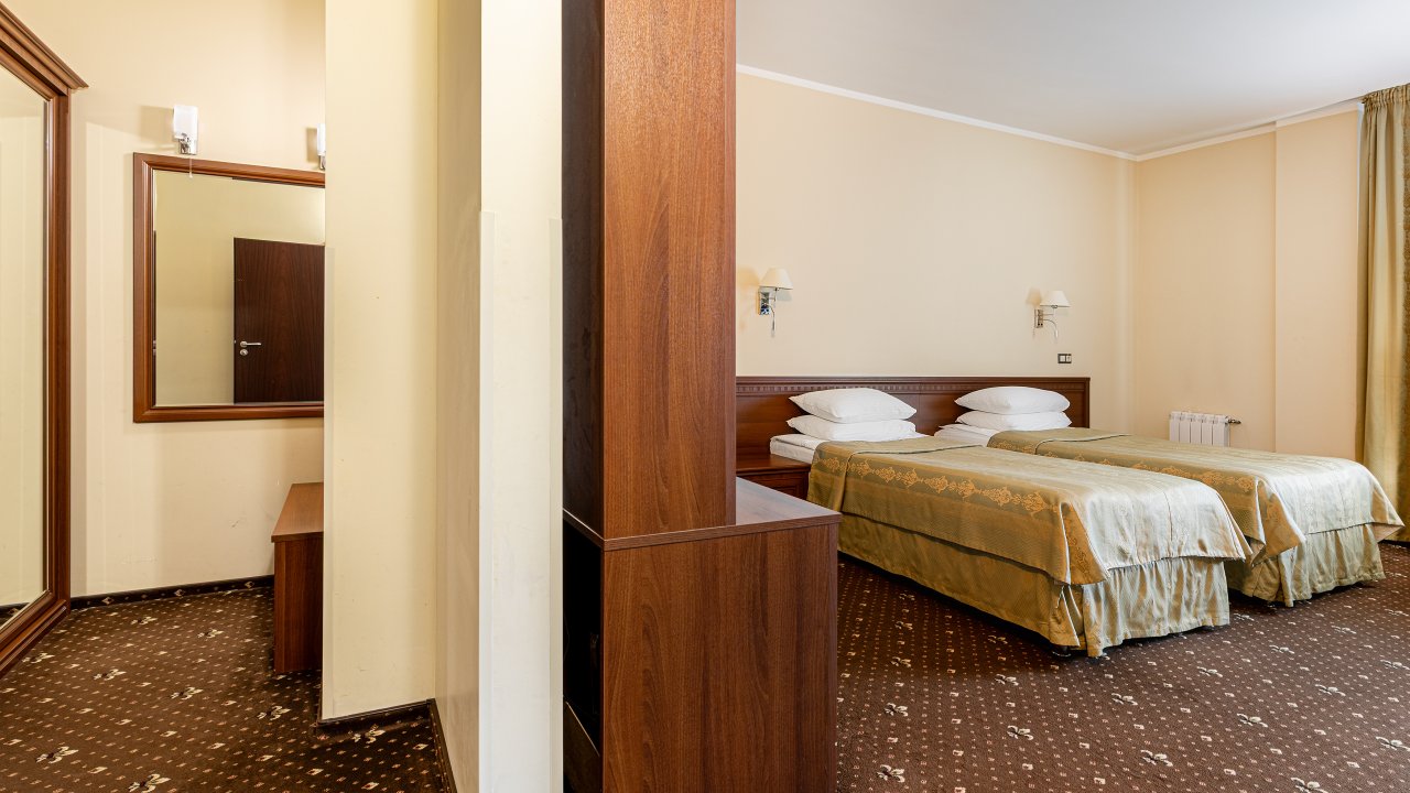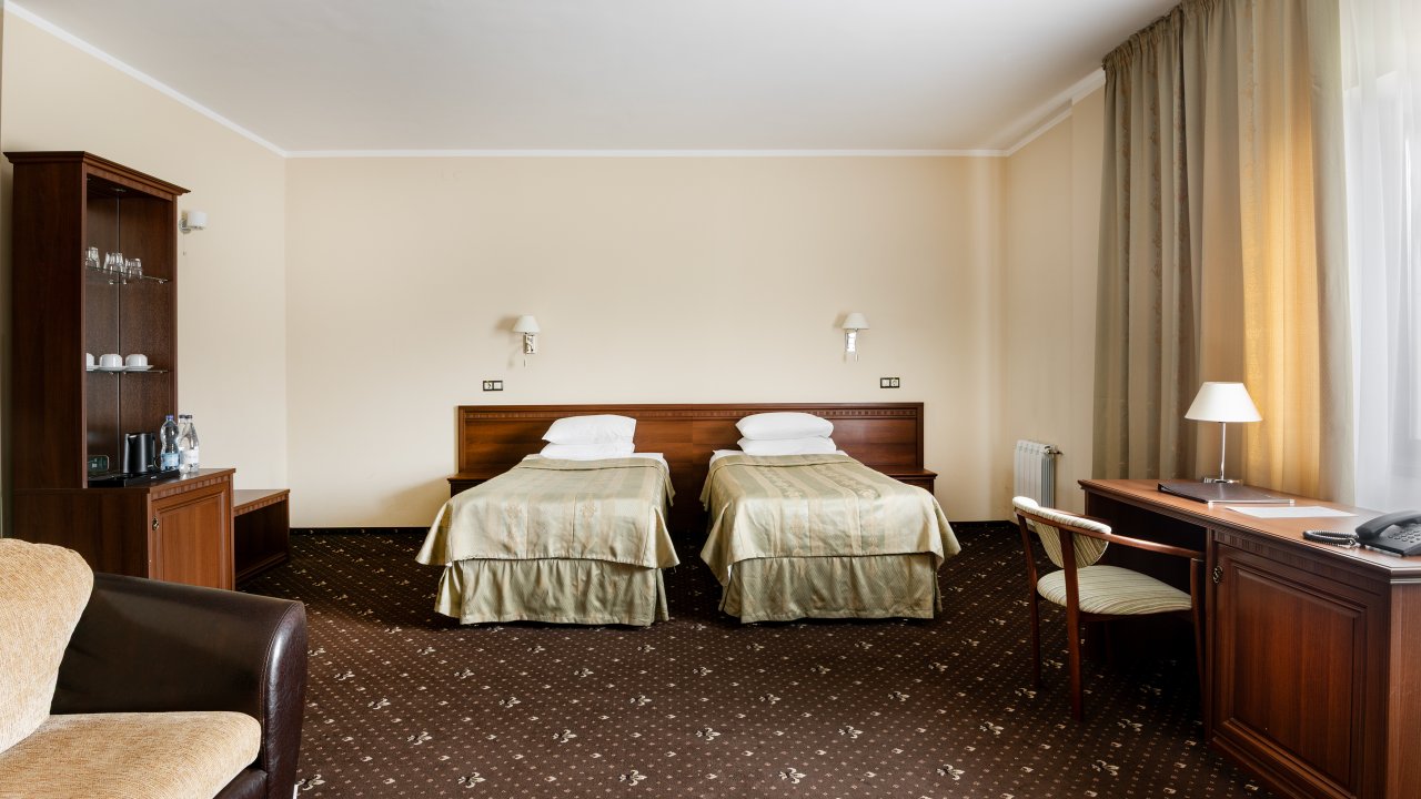 Две кровати в этих номерах сдвигаются в одну. Также в номерах есть кресла-кровати, которые могут служить в качестве дополнительного спального места.